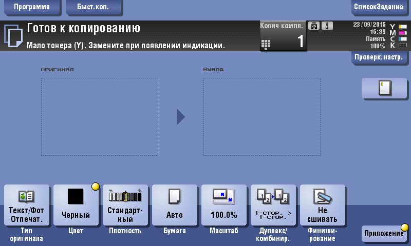 В верхней части панели управления МФУ bizhub можно вывести кнопку быстрого переключения языка интерфейса.