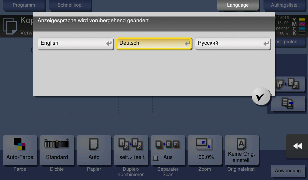 В офисе мультиязычная среда: большинство сотрудников – русскоговорящие, но часть руководителей – иностранцы, которые плохо знают русский. Им было бы удобнее ориентироваться в интерфейсе МФУ, если бы он был на родном языке. Можно ли каким-то образом быстро переключать язык интерфейса?